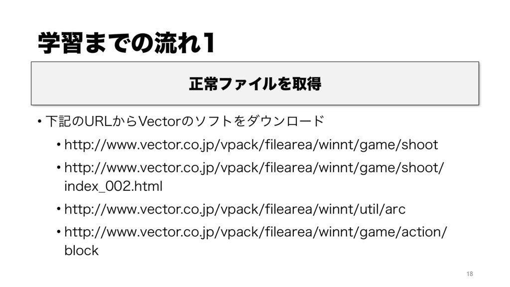 ֶश·ͰͷྲྀΕ 18 ਖ਼ৗϑΝΠϧΛऔಘ • Լهͷ63-͔Β7FDUPSͷιϑτΛμϯϩʔυ • IUUQXXXWFDUPSDPKQWQBDLGJMFBSFBXJOOUHBNFTIPPU • IUUQXXXWFDUPSDPKQWQBDLGJMFBSFBXJOOUHBNFTIPPU JOEFY@IUNM