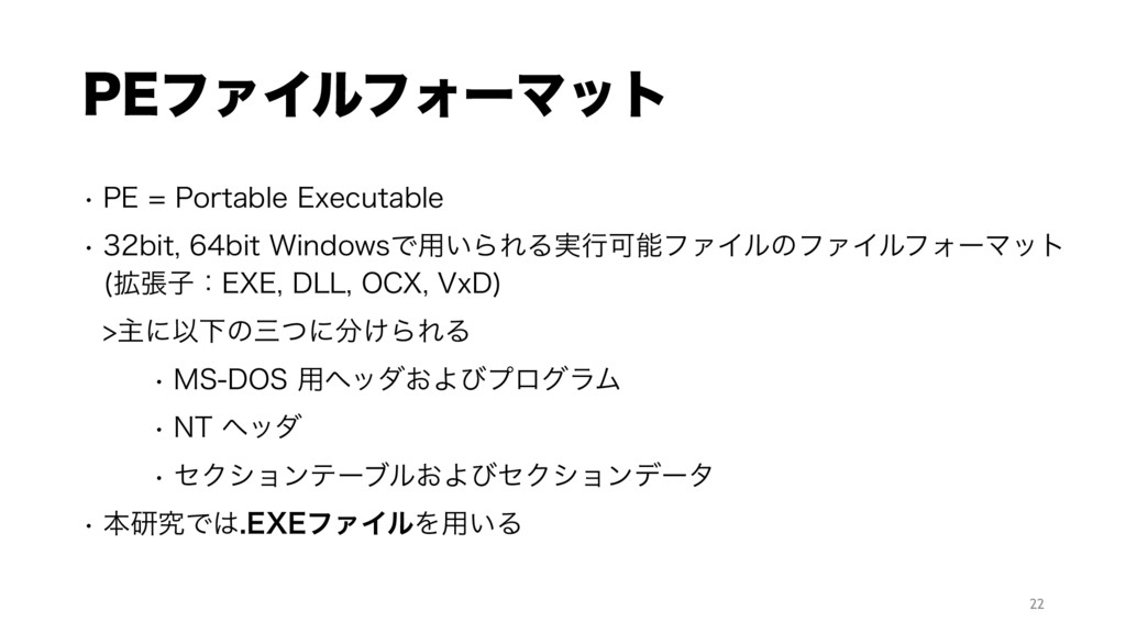 1&ϑΝΠϧϑΥʔϚοτ 22 w 1&1PSUBCMF&YFDVUBCMF w CJU CJU8JOEPXTͰ༻͍ΒΕΔ࣮ߦՄೳϑΝΠϧͷϑΝΠϧϑΥʔϚοτ ֦ுࢠɿ&9& %-- 0$9