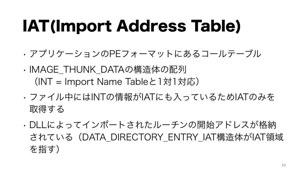 *"5 *NQPSU"EESFTT5BCMF 24 w ΞϓϦέʔγϣϯͷ1&ϑΥʔϚοτʹ͋Δίʔϧςʔϒϧ w *."(&@5)6/,@%"5"ͷߏମͷྻɹɹɹɹɹɹɹɹɹɹɹ ʢ*/5*NQPSU/BNF5BCMFͱରରԠʣ w ϑΝΠϧதʹ*/5ͷใ͕*"5ʹೖ͍ͬͯΔͨΊ*"5ͷΈΛɹ