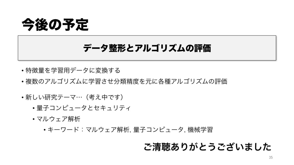 ྔࢠίϯϐϡʔλͱηΩϡϦςΟ • ϚϧΣΞղੳ • ΩʔϫʔυɿϚϧΣΞղੳ ྔࢠίϯϐϡʔλ ػցֶश ͝ਗ਼ௌ͋Γ͕ͱ͏͍͟͝·ͨ͠