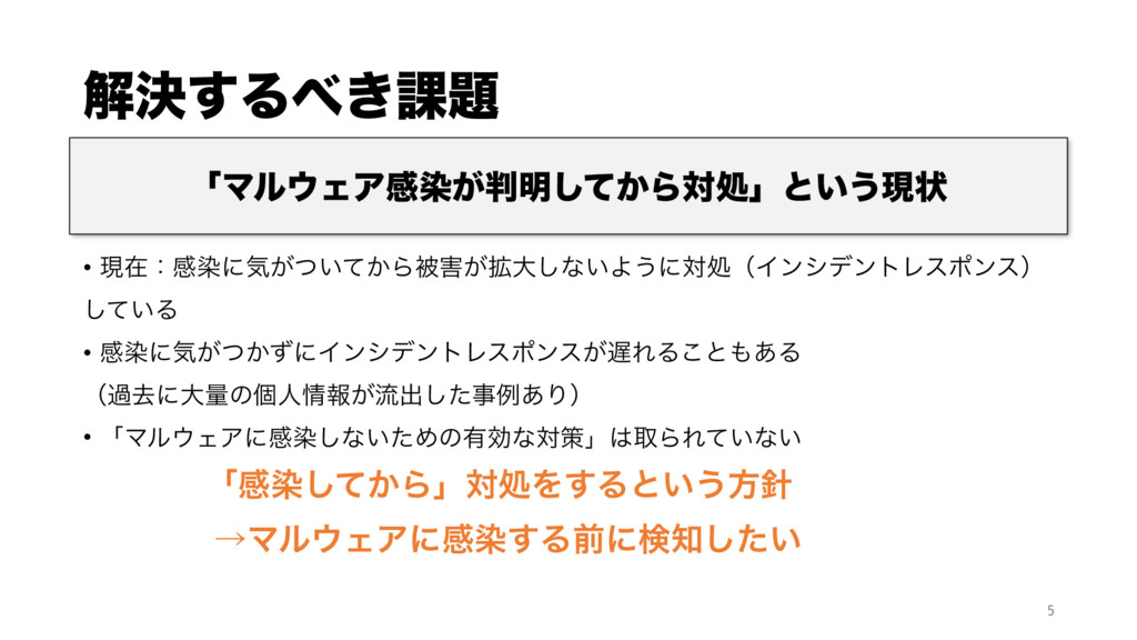 ղܾ͢Δ͖՝ • ݱࡏɿײછʹؾ͕͍͔ͭͯΒඃ͕֦େ͠ͳ͍Α͏ʹରॲʢΠϯγσϯτϨεϙϯεʣ ͍ͯ͠Δ • ײછʹؾ͕͔ͭͣʹΠϯγσϯτϨεϙϯε͕ΕΔ͜ͱ͋Δ ʢաڈʹେྔͷݸਓใ͕ྲྀग़ͨ͠ࣄྫ͋Γʣ • ʮϚϧΣΞʹײછ͠ͳ͍ͨΊͷ༗ޮͳରࡦʯऔΒΕ͍ͯͳ͍ ɹɹɹʮײછ͔ͯ͠ΒʯରॲΛ͢Δͱ͍͏ํ