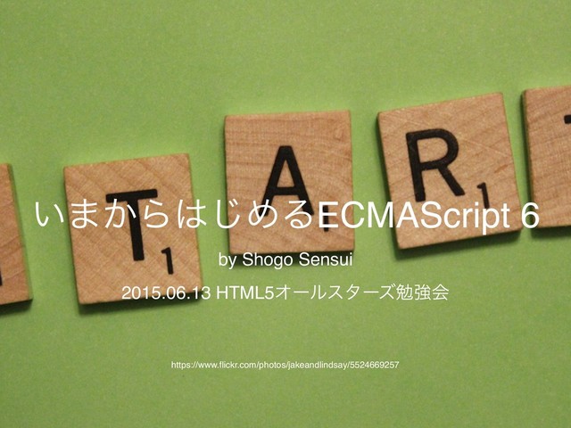 ͍·͔Β͡ΊΔECMAScript 6 by Shogo Sensui 2015.06.13 HTML5Φʔϧελʔζษڧձ https://www.flickr.com/photos/jakeandlindsay/5524669257