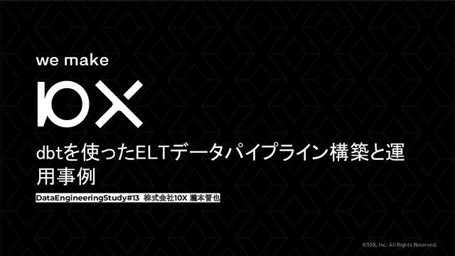 ©10X, Inc. All Rights Reserved. dbtを使ったELTデータパイプライン構築と運 用事例 DataEngineeringStudy#13 株式会社10X