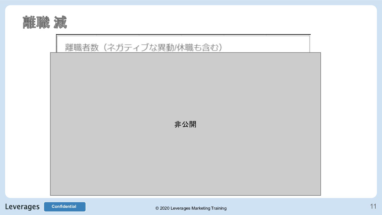 © 2020 Leverages Marketing Training Confidential 離職 減 11 非公開