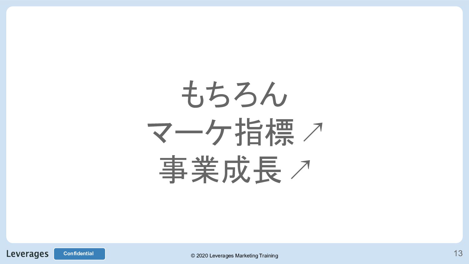 © 2020 Leverages Marketing Training Confidential もちろん マーケ指標 ↗ 事業成長