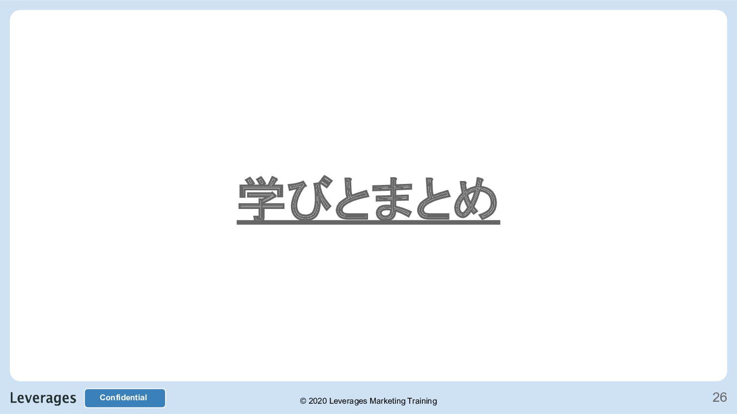 © 2020 Leverages Marketing Training Confidential 学びとまとめ 26