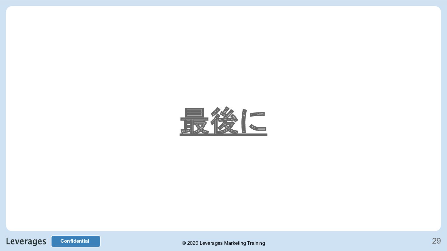 © 2020 Leverages Marketing Training Confidential 最後に 29