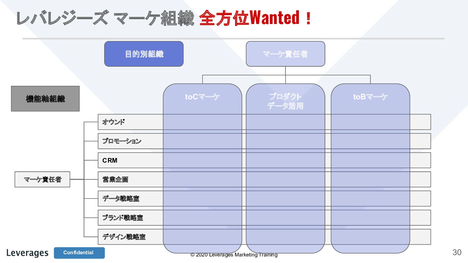 © 2020 Leverages Marketing Training Confidential レバレジーズ マーケ組織 全方位Wanted! 30