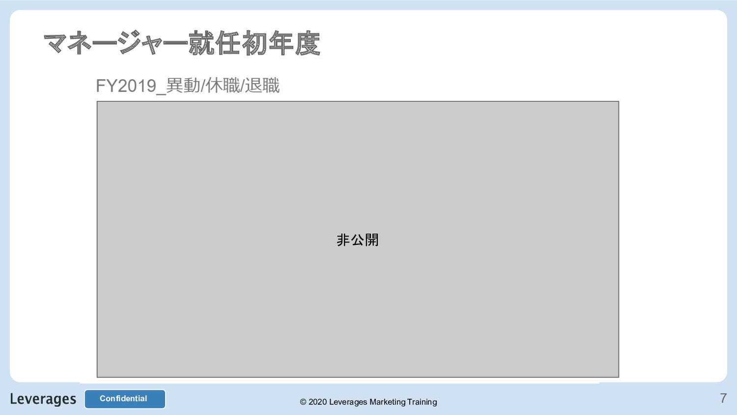 © 2020 Leverages Marketing Training Confidential マネージャー就任初年度 7 非公開