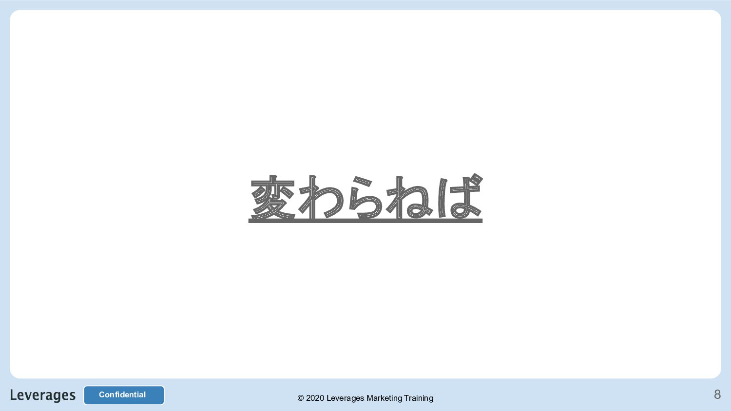 © 2020 Leverages Marketing Training Confidential 変わらねば 8
