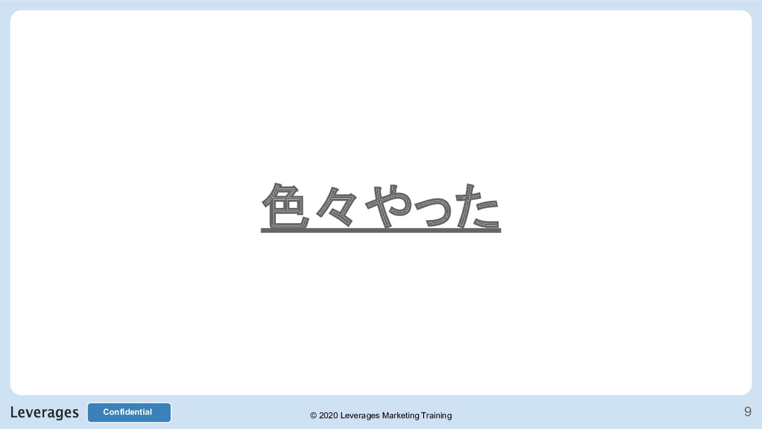 © 2020 Leverages Marketing Training Confidential 色々やった 9