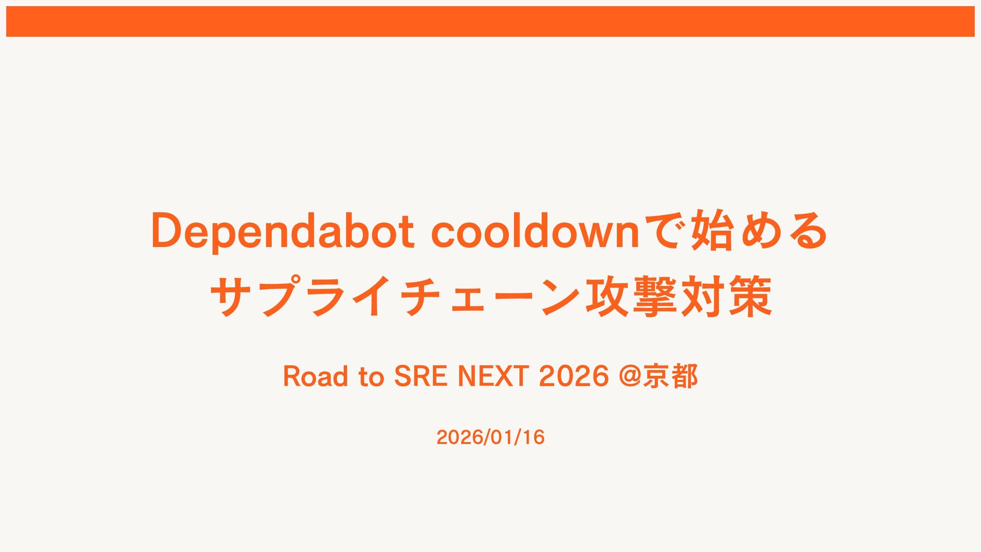 Dependabot cooldownで始める サプライチェーン攻撃対策 Road to SRE NEXT 2026 @京都 2026/01/16
