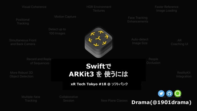 Occlusion 2D/3D ・ユーザーの身体を、 3Dオブジェクトの手前に表示させる ・ユーザーの身体と 3Dオブジェクトの前後関係を、反映し表示させる A12 Bionic以上 (iPhone xR/xS) Motion Capture 2D/3D ・ユーザーの身体 /関節の位置を画面上の位置座標で取得出来る ・ユーザーの身体 /関節の位置を空間座標で取得出来る A12 Bionic以上 (iPhone xR/xS) Multiple Face Tracking ・3人までの顔の場所と表情を同時追跡する A12 Bionic以上 (iPhone xR/xS) Simultaneous Front and Back Camera ・手前側のカメラと背面側のカメラで同時に ARを利用出来る A12 Bionic以上 (iPhone xR/xS) Collaborative Sessions ・他のユーザーとの AR体験の共有を補助する A9 以上 (iPhone 6s/SE) ARKit3で追加されたメイン機能