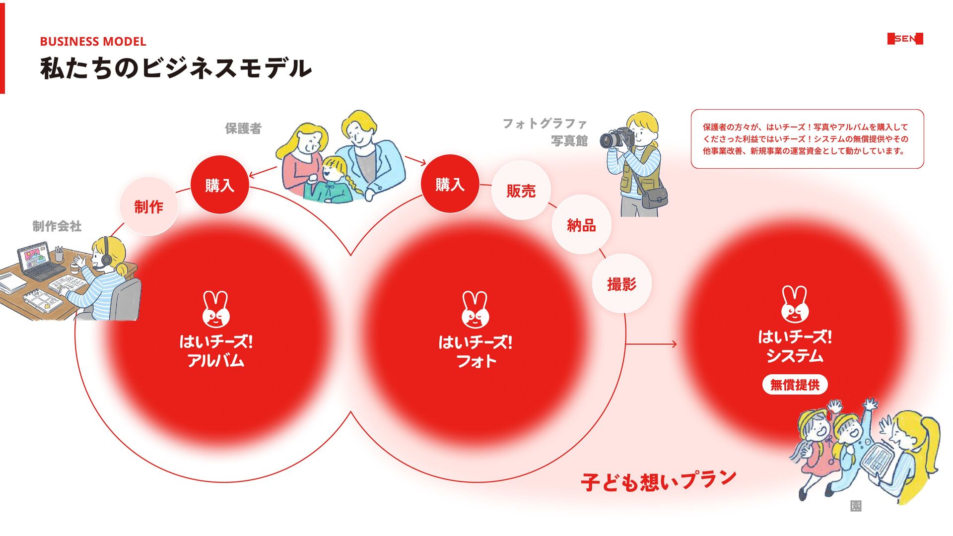 子ども想いプラン BUSINESS MODEL 私たちのビジネスモデル 無償提供 撮影 納品 購入 販売 購入