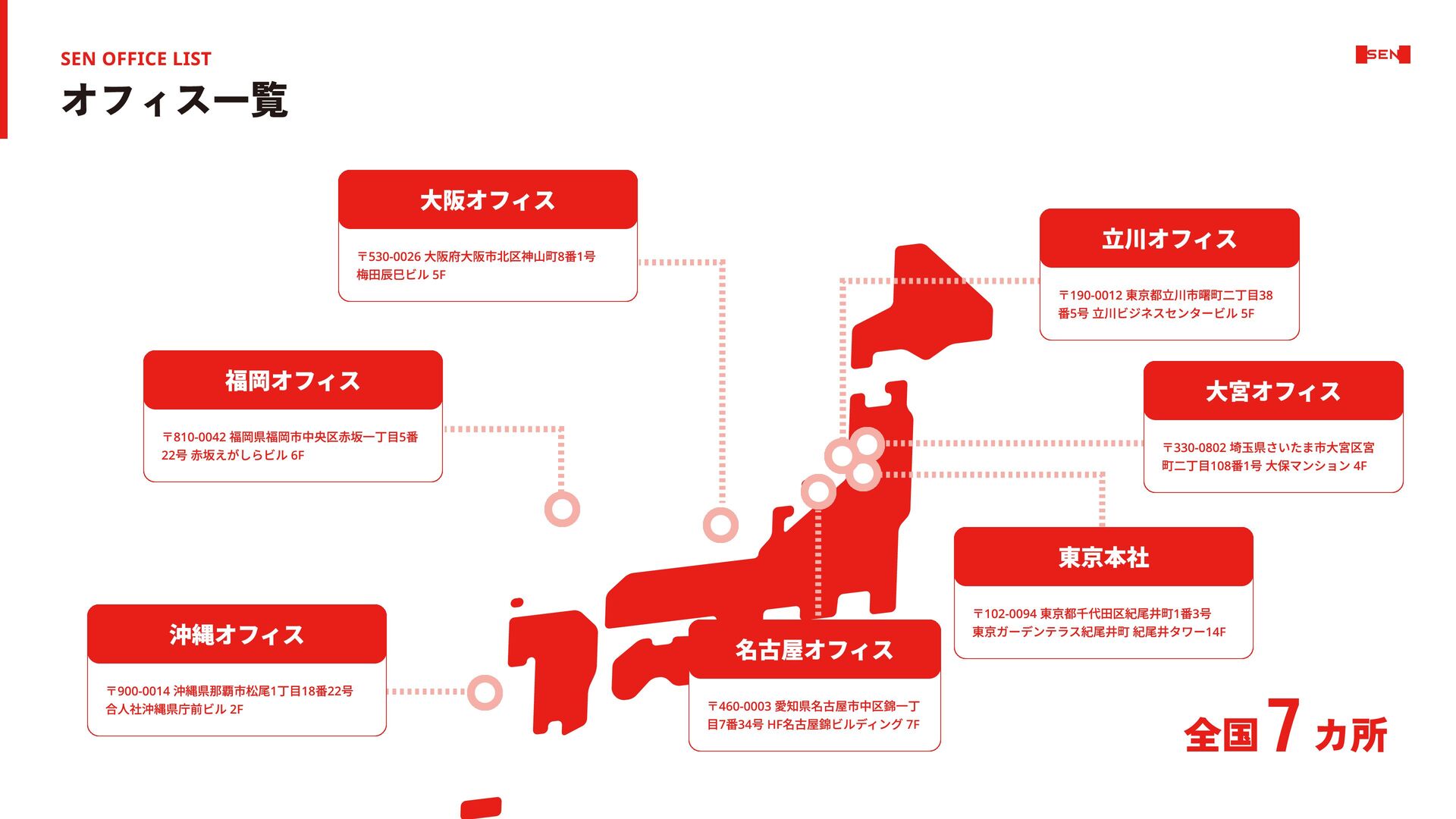 SEN OFFICE LIST オフィス一覧 全国 7 カ所 〒530-0026 大阪府大阪市北区神山町8番1号 梅田辰巳ビル