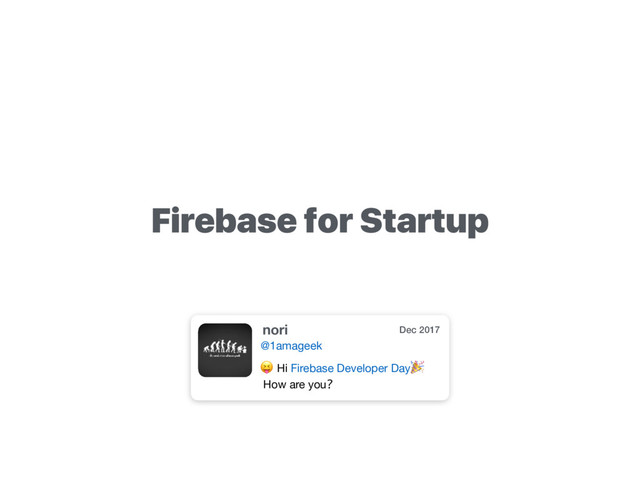 Firebase for Startup nori Dec 2017 @1amageek Hi Firebase Developer
