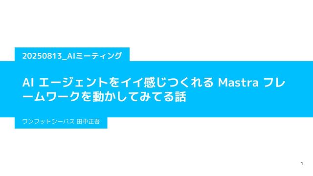20250813_AIミーティング「AI エージェントをイイ感じつくれる Mastra フレームワークを動かしてみてる話」の登壇資料です。