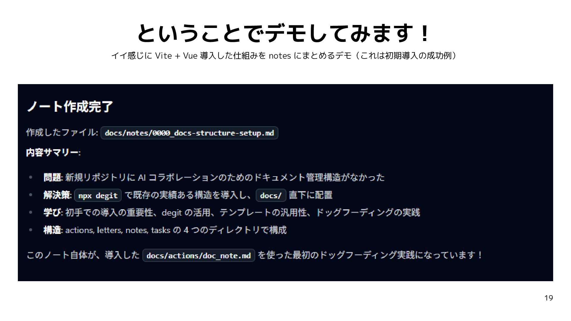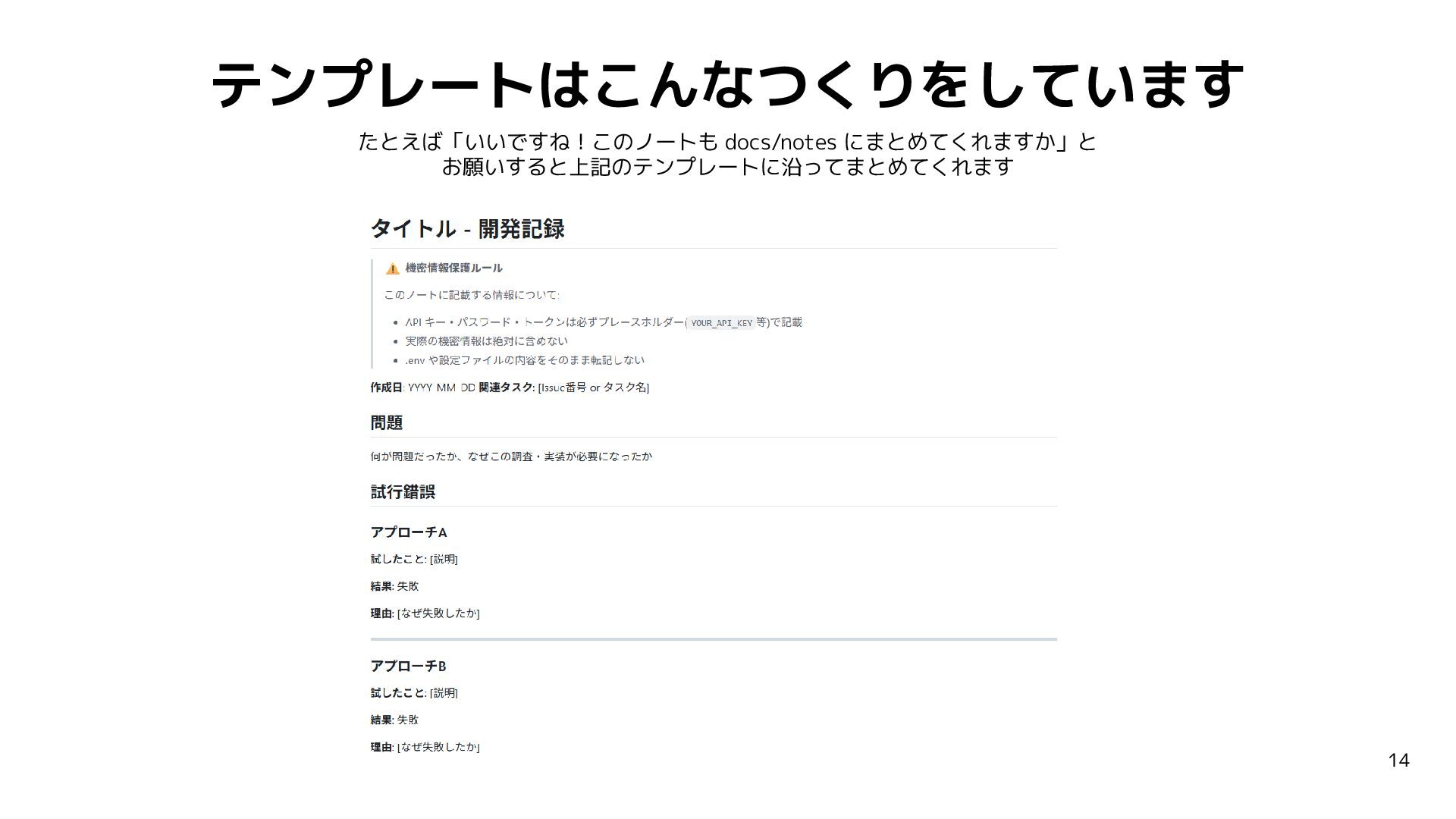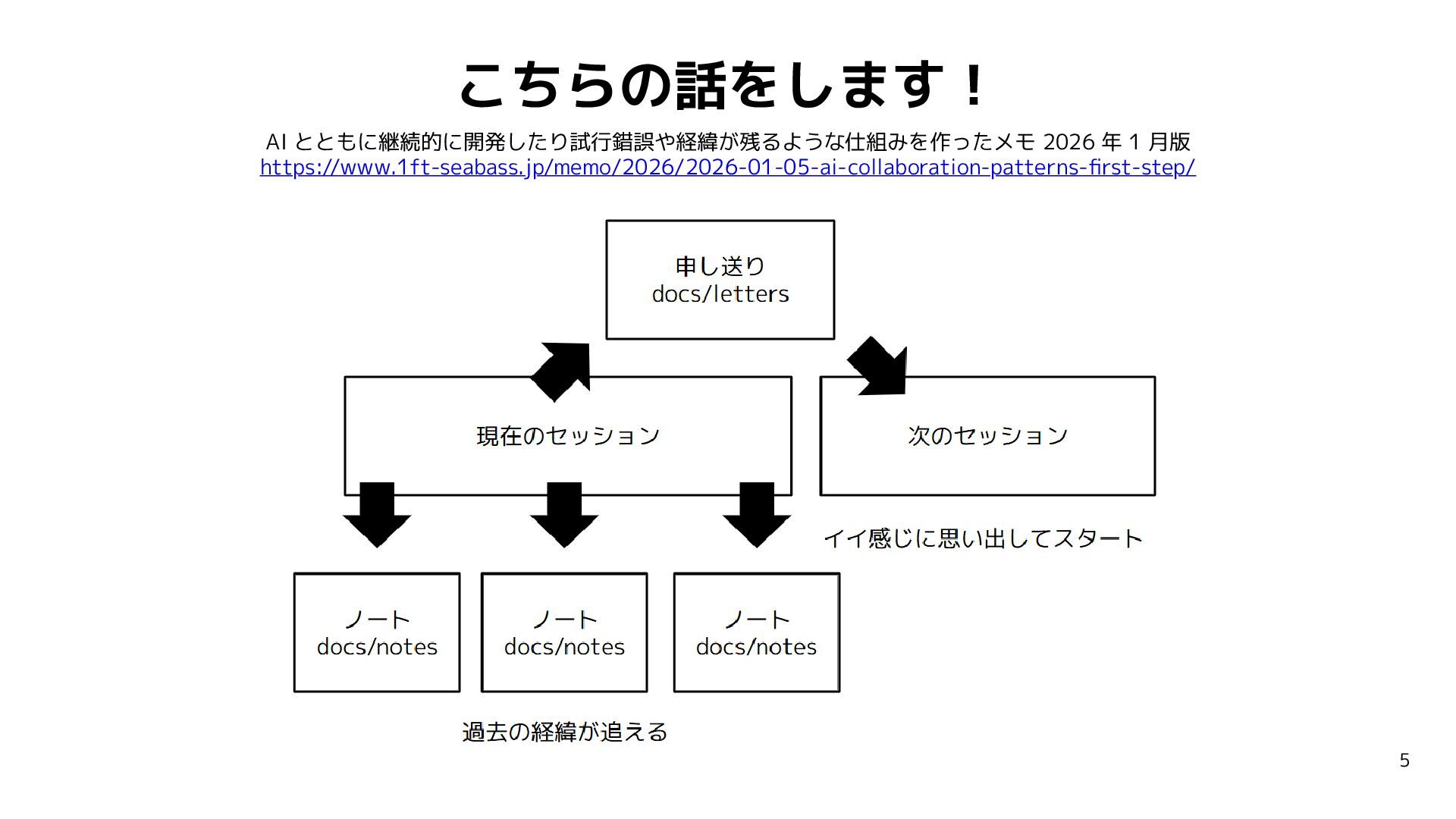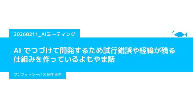 AIミーティング 20260211「AI でつづけて開発するため試行錯誤や経緯が残る仕組みを作っているよもやま話」の登壇資料です。