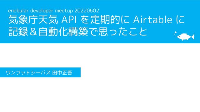 enebular developer meetup 20220602「気象庁天気 API を定期的に Airtable に記録&自動化構築で思ったこと」の登壇資料です。
