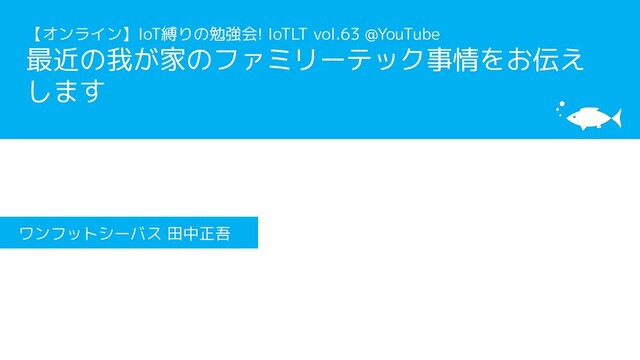 【オンライン】IoT縛りの勉強会! IoTLT vol.63 @YouTube「最近の我が家のファミリーテック事情をお伝えします」の登壇資料です。