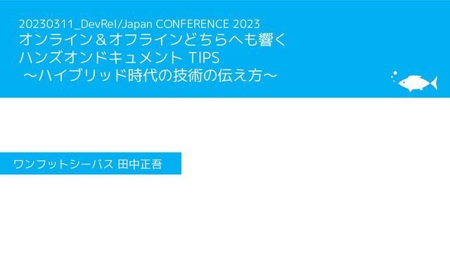 DevRel/Japan CONFERENCE 2023「オンライン&オフラインどちらへも響くハンズオンドキュメント TIPS ~ハイブリッド時代の技術の伝え方~」の登壇資料です。