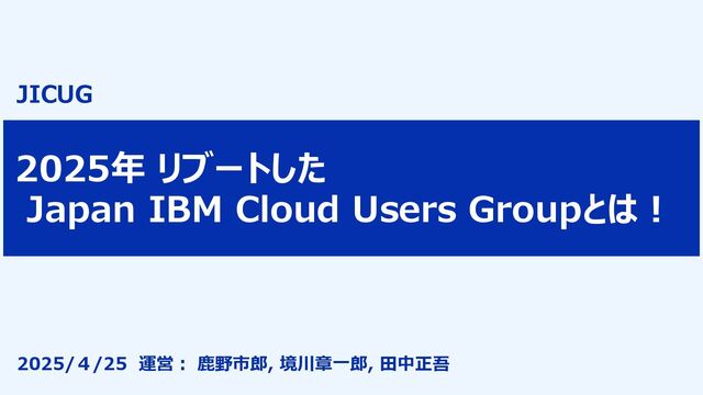 2025年 リブートした Japan IBM Cloud Users Groupとは! JICUG 2025/4/25 運営: