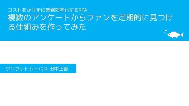 【オンライン】コストをかけずに業務効率化するRPA「複数のアンケートからファンを定期的に見つける仕組みを作ってみた」の登壇資料です。