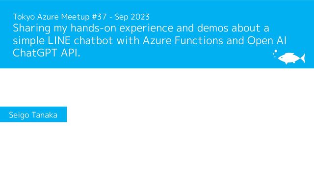 This is my presentation in Tokyo Azure Meetup #37 - Sep 2023. Title is "Sharing my hands-on experience and demos about a simple LINE chatbot with Azure Functions and Open AI ChatGPT API".