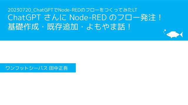 ChatGPTでNode-REDのフローをつくってみたLT「ChatGPT さんに Node-RED のフロー発注!基礎作成・既存追加・よもやま話!」の登壇資料です。