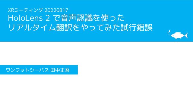 XRミーティング 20220817「HoloLens 2 で音声認識を使ったリアルタイム翻訳をやってみた試行錯誤」の登壇資料です。