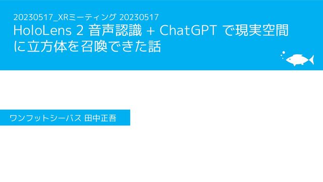 XRミーティング 20230517「HoloLens 2 音声認識 + ChatGPT で現実空間に立方体を召喚できた話」の登壇資料です。
