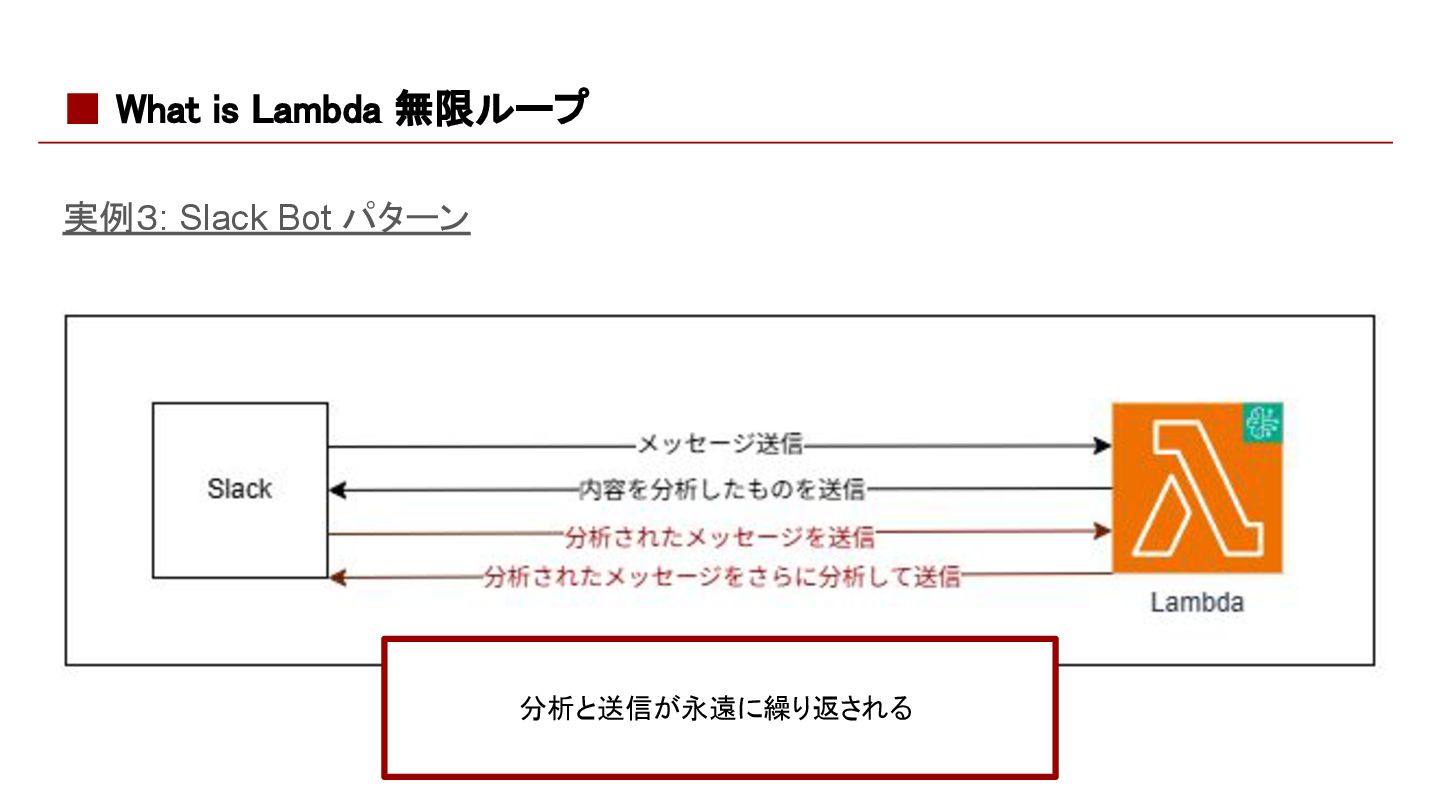 実例3: Slack Bot パターン ▪ What is Lambda 無限ループ