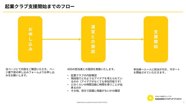 長野市主催のスタートアップ支援事業、「NAGANO STARTUP STUDIO」の起業支援プログラムのひとつである、「起業クラブ」の説明資料です。