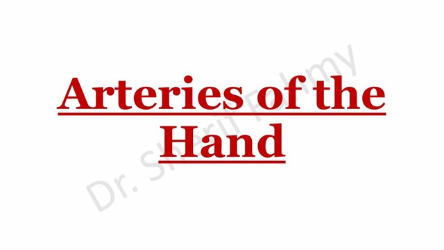 At the level of middle of shaft of metacarpal bones. Deep to flexor digitorum tendons. At level just distal to bases of metacarpal bones. Anterior to carpal bones, deep to flexor tendons. Posterior to carpal bones, deep to extensor tendons. -Mainly superficial branch of ulnar artery. -Superficial palmar branch of radial a. -Mainly radial artery. -Deep branch of ulnar artery. -Anterior carpal branches of radial& ulnar arteries. -Descending branch of anterior interosseous artery. -Recurrent branch from deep palmar arch. It is a cruciate anastomosis. -Posterior carpal branches of radial& ulnar arteries. -Anterior & posterior interosseous artery. -3 common palmar digital arteries. -Palmar digital artery. -3 palmar metacarpal arteries. -Proximal perforating arteries. -Recurrent branch. -Articular branches to wrist joint. -2nd, 3rd and 4th dorsal metacarpal arteries. Site Formation Branches Superficial palmar Deep palmar Anterior carpal Posterior carpal Dr. Sherif Fahmy