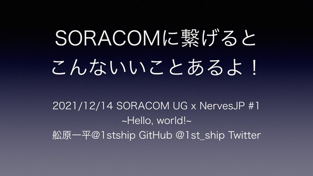 2021/12/15に開催されたSORACOM UG x NervesJP #1 ~Hello, world!~の登壇資料です。