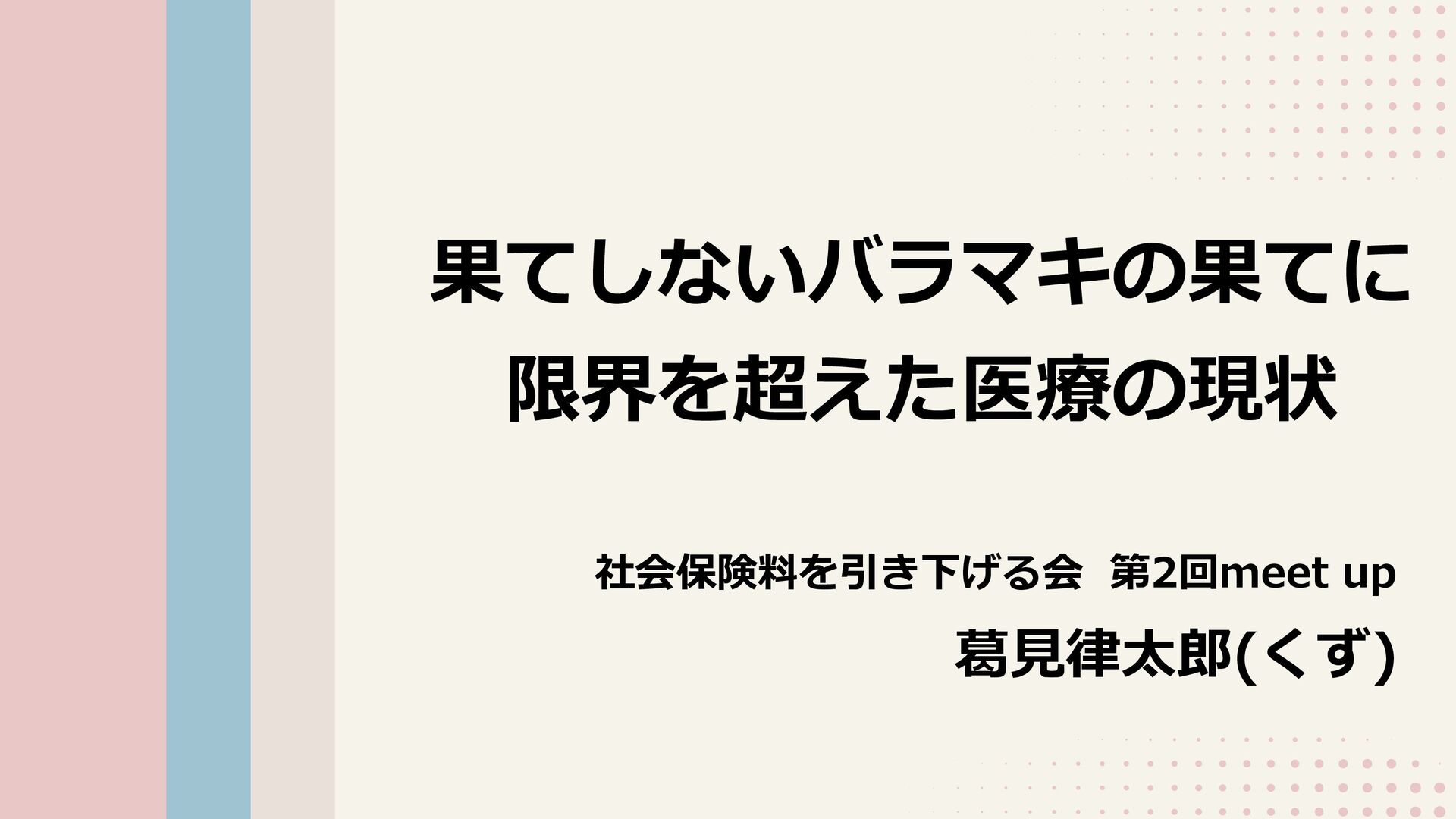 果てしないバラマキの果てに 限界を超えた医療の現状 社会保険料を引き下げる会 第2回meet up 葛見律太郎(くず)