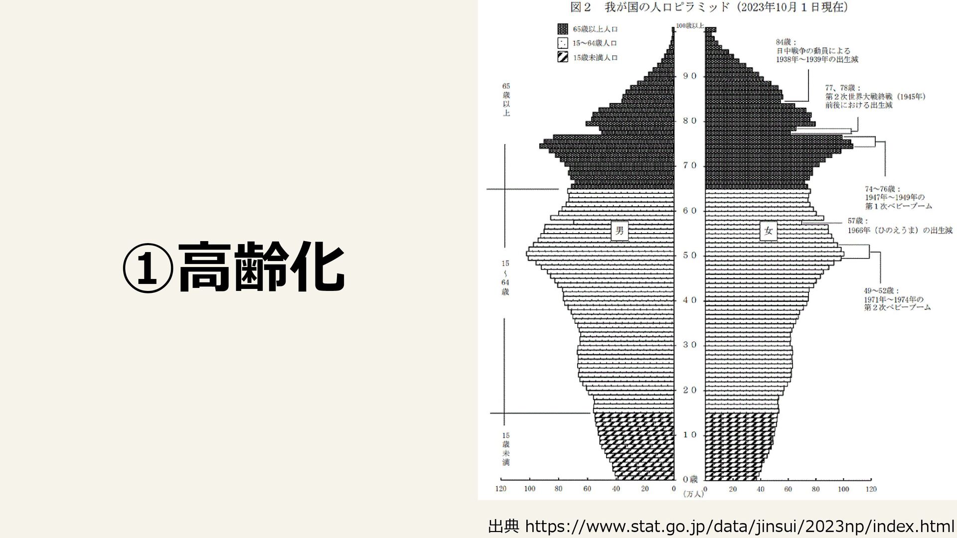 ①高齢化 出典 https://www.stat.go.jp/data/jinsui/2023np/index.html