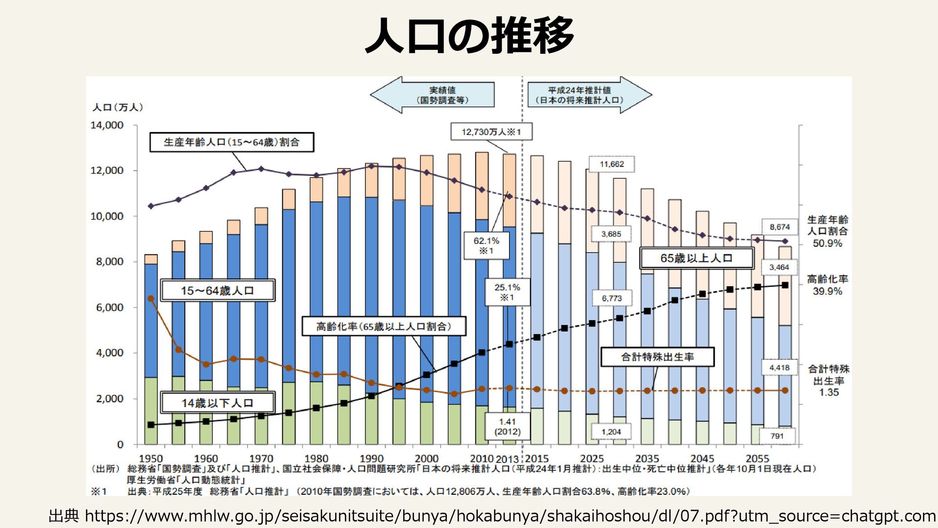 人口の推移 出典 https://www.mhlw.go.jp/seisakunitsuite/bunya/hokabunya/shakaihoshou/dl/07.pdf?utm_source=chatgpt.com