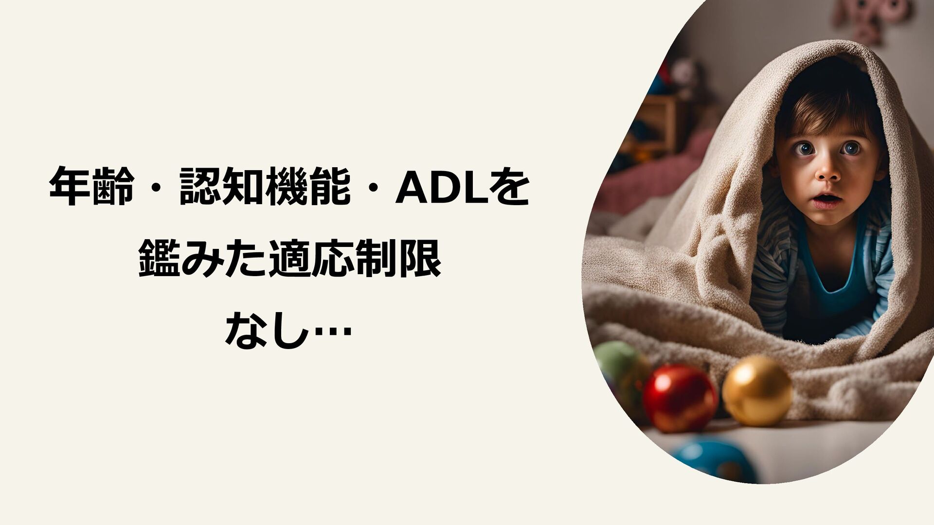年齢・認知機能・ADLを 鑑みた適応制限 なし…