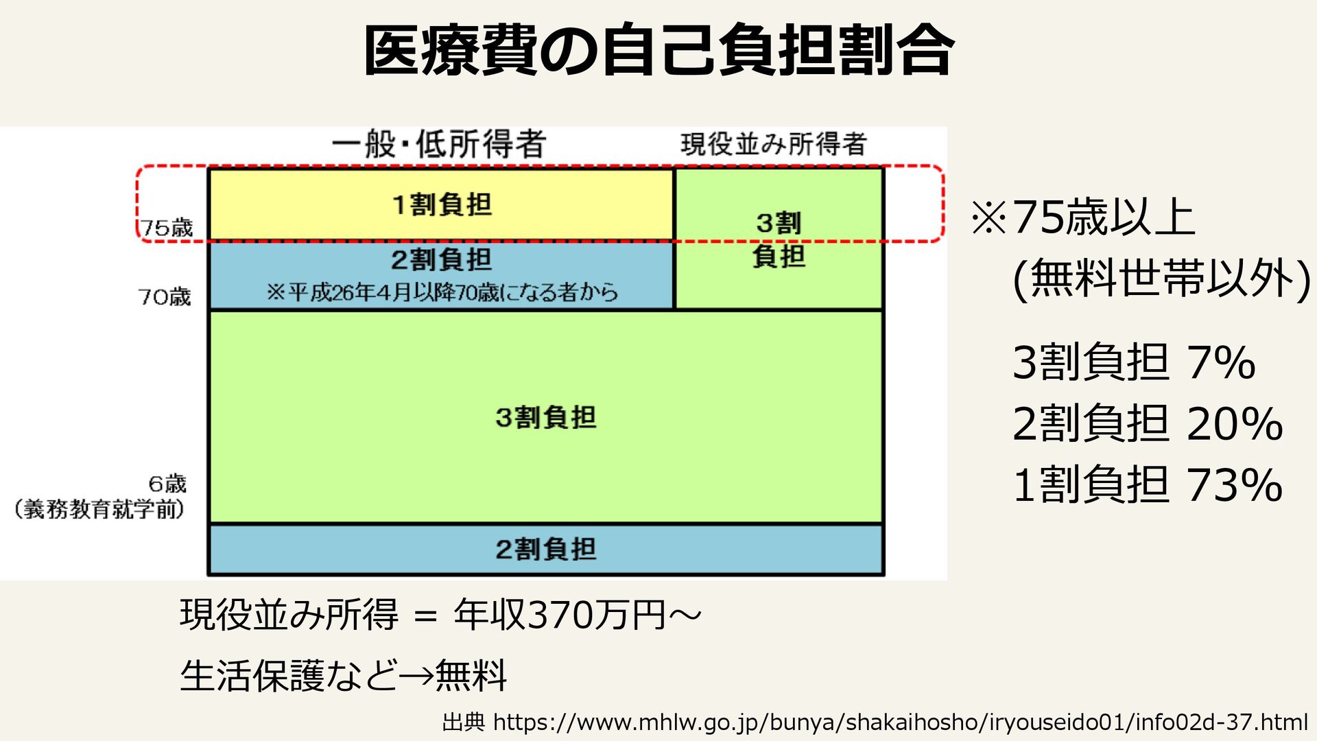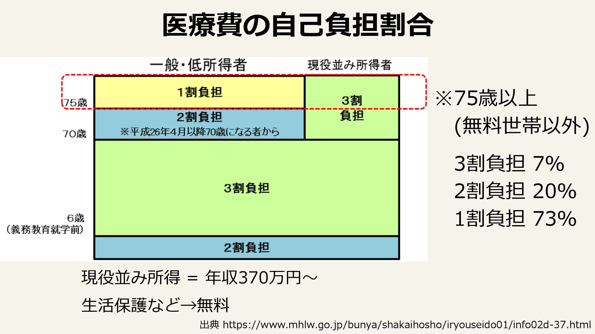 20% 1割負担 73% 出典 https://www.mhlw.go.jp/bunya/shakaihosho/iryouseido01/info02d-37.html