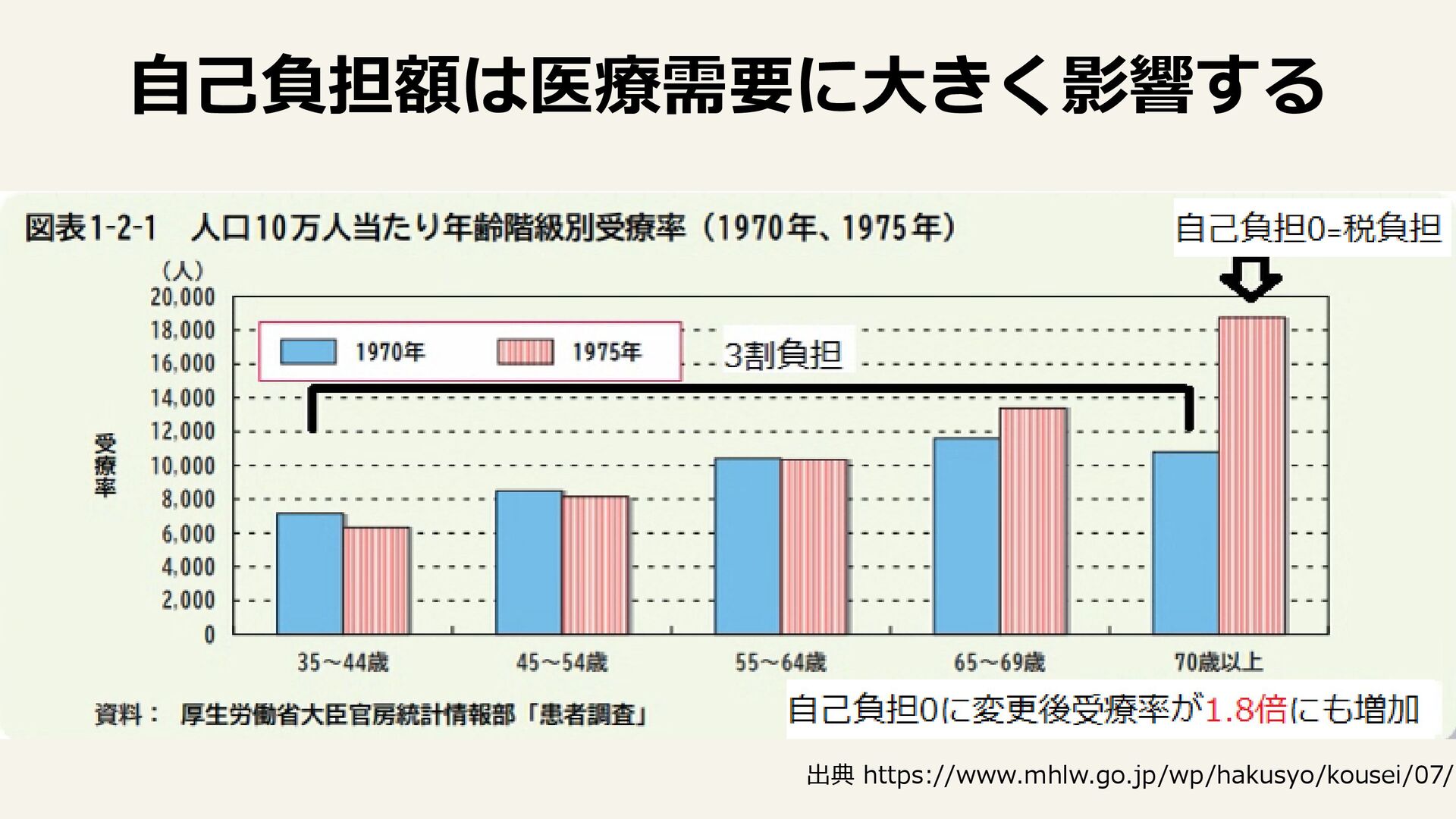 自己負担額は医療需要に大きく影響する 出典 https://www.mhlw.go.jp/wp/hakusyo/kousei/07/