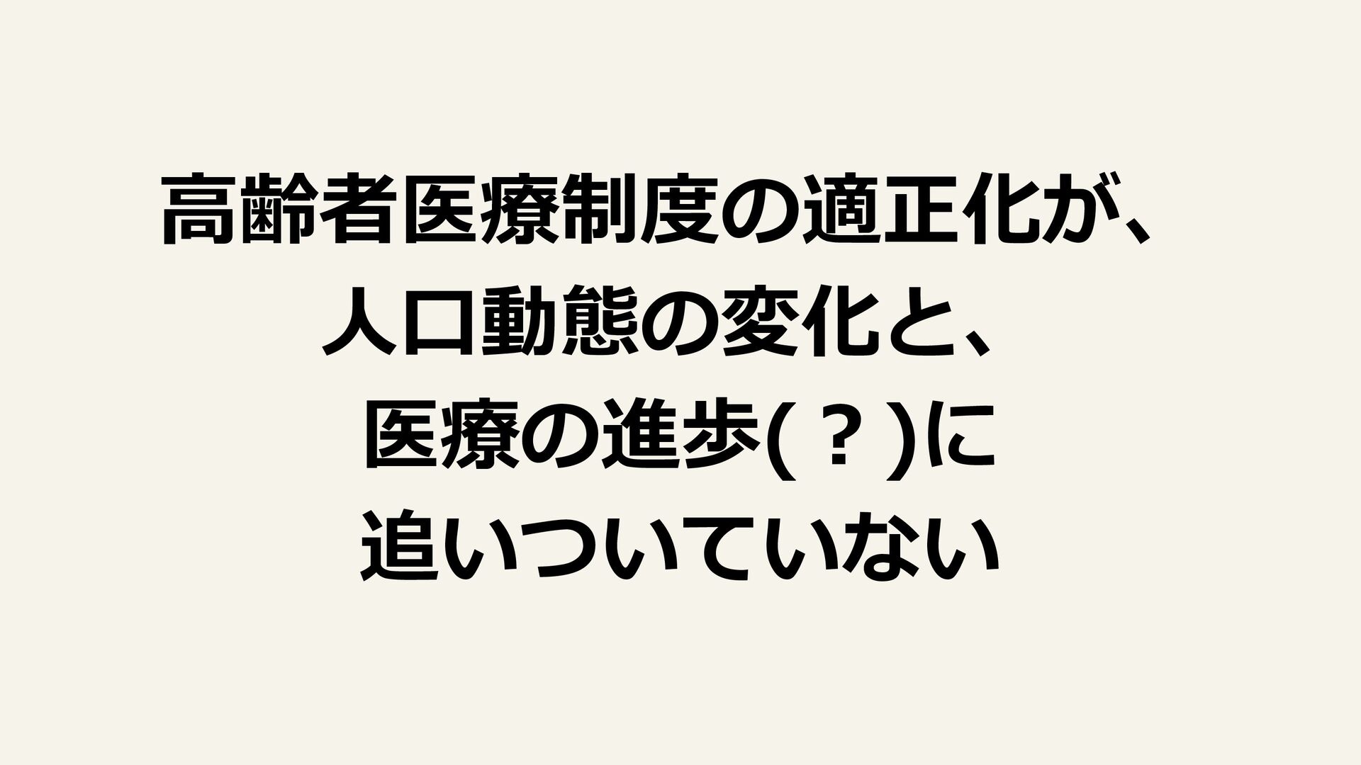 高齢者医療制度の適正化が、 人口動態の変化と、 医療の進歩(?)に 追いついていない