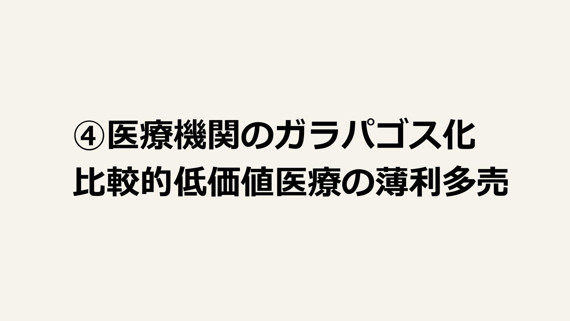 ④医療機関のガラパゴス化 比較的低価値医療の薄利多売