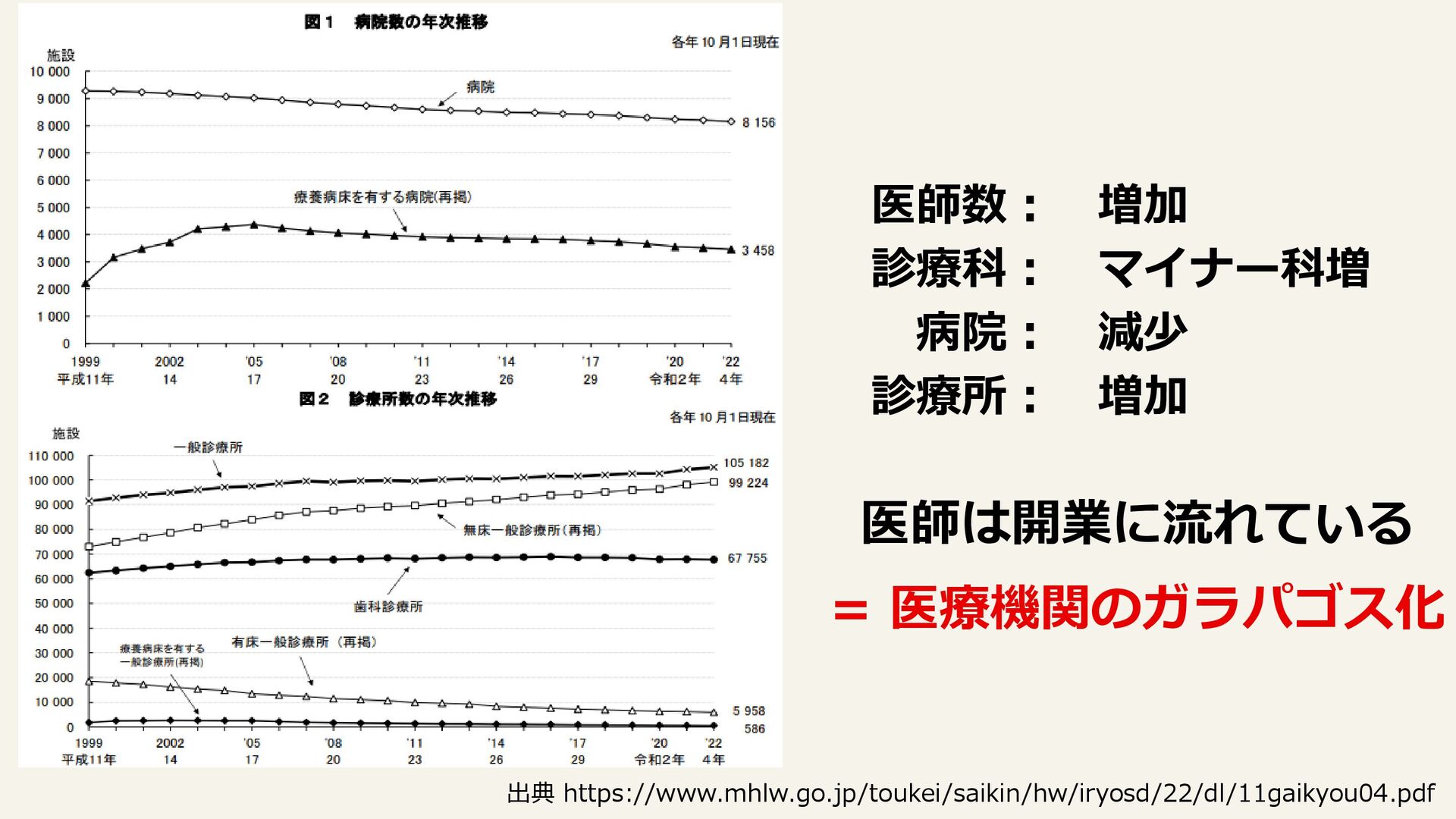医療機関のガラパゴス化 出典 https://www.mhlw.go.jp/toukei/saikin/hw/iryosd/22/dl/11gaikyou04.pdf