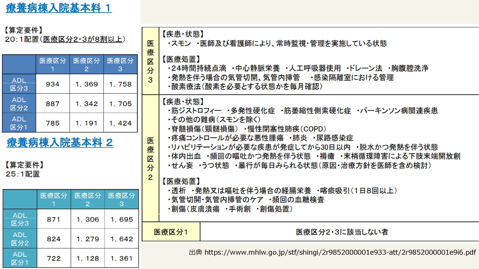 療養病床への入院 入院基本料 約15000円/日 中心静脈注射 約1400円/日 リハビリ 約1000円/日 褥瘡マネジメント加算 薬剤・輸液製剤費など →月100万ほど