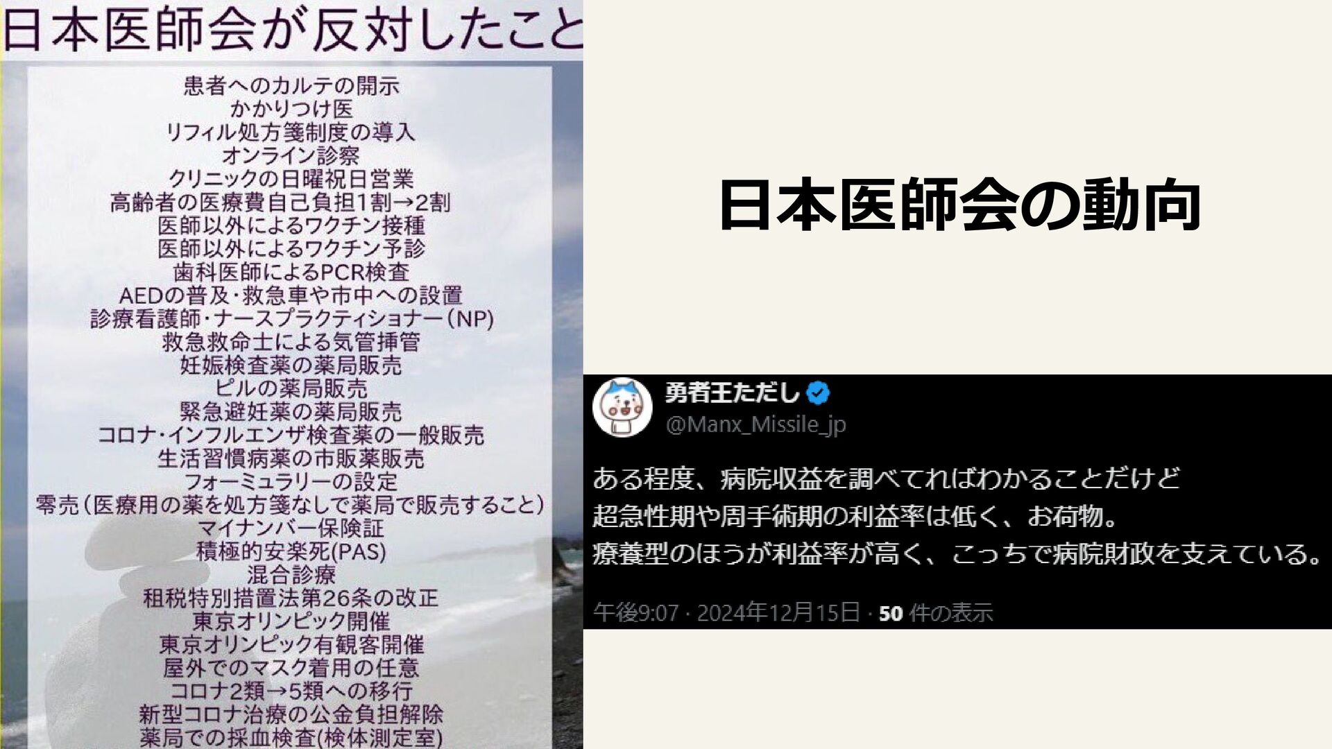 医療DX、マイナ保険証による管理、医業独占の緩和 などなど…