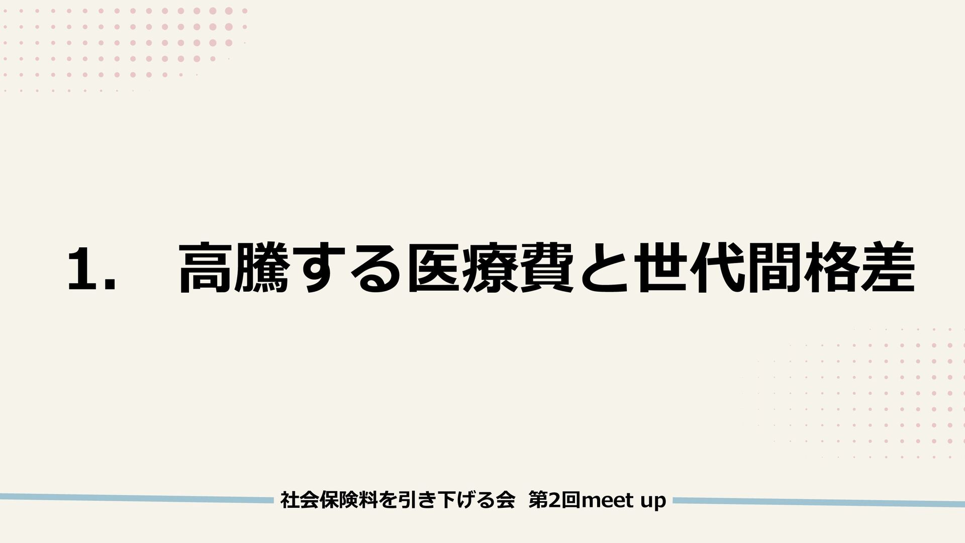 1. 高騰する医療費と世代間格差 社会保険料を引き下げる会 第2回meet up