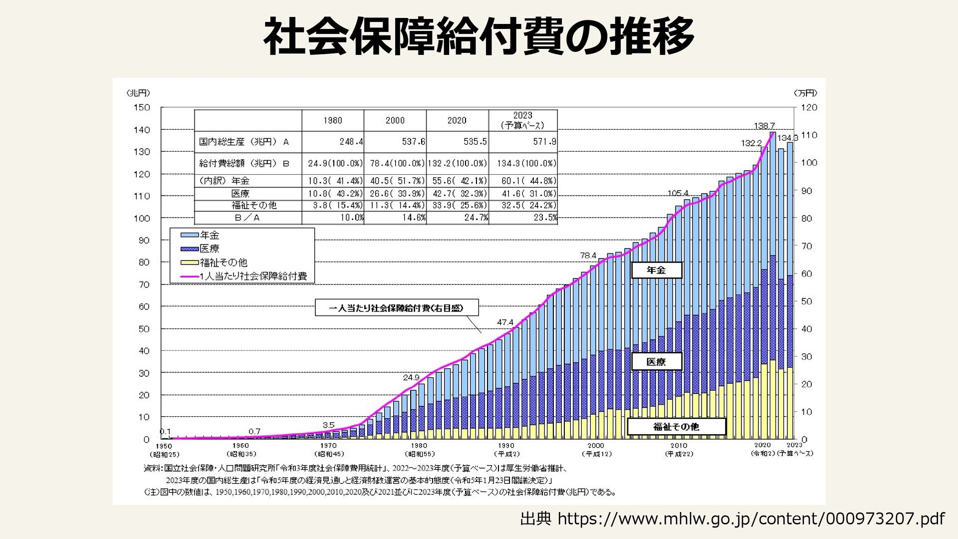 社会保障給付費の推移 出典 https://www.mhlw.go.jp/content/000973207.pdf