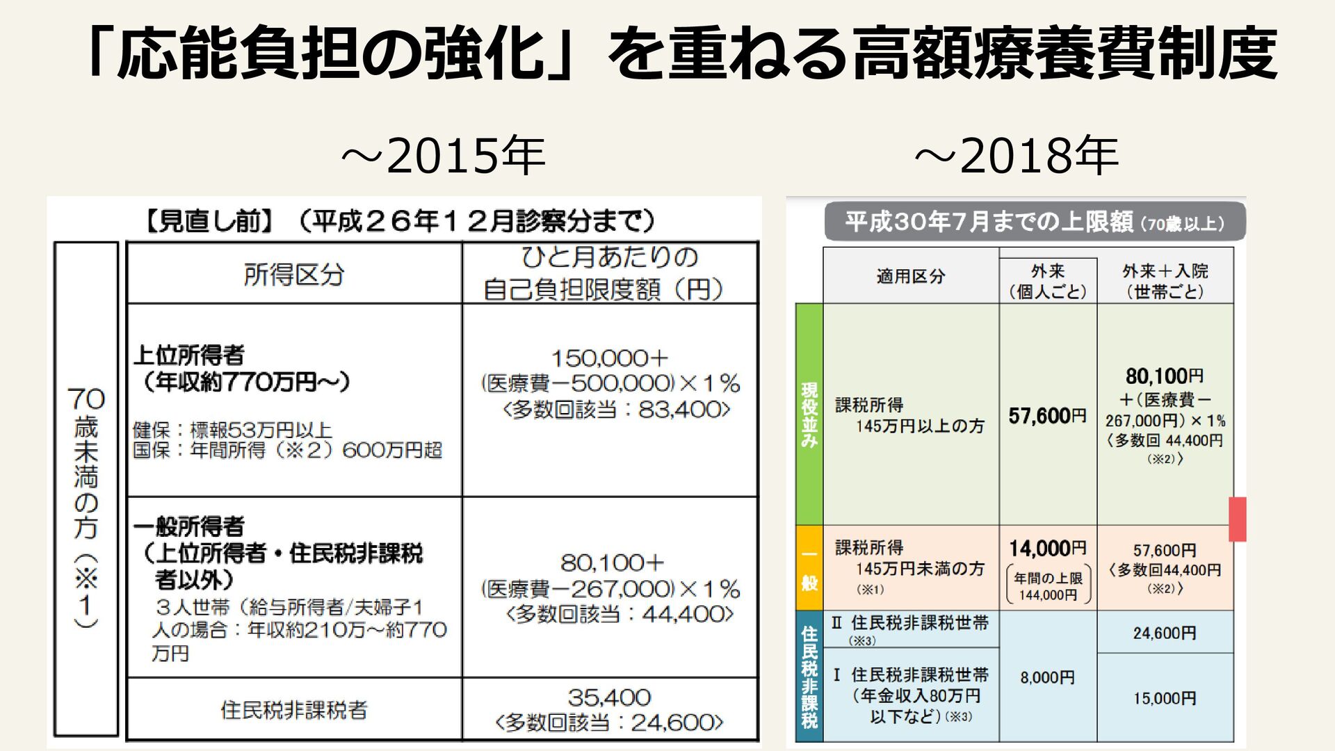 「応能負担の強化」を重ねる高額療養費制度 ~2015年 ~2018年