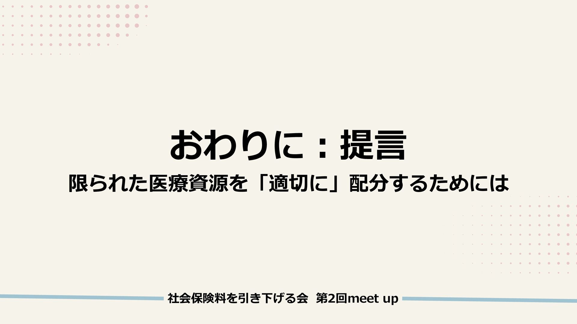 おわりに:提言 限られた医療資源を「適切に」配分するためには 社会保険料を引き下げる会 第2回meet up
